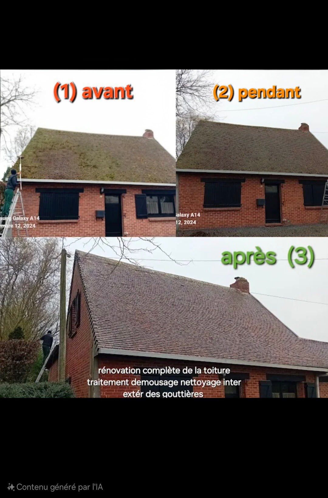 Traitements démoussage a la brosse débouchage des Goutieres nettoyage en 3 étapes résultats impeccable clients extrêmement satisfait